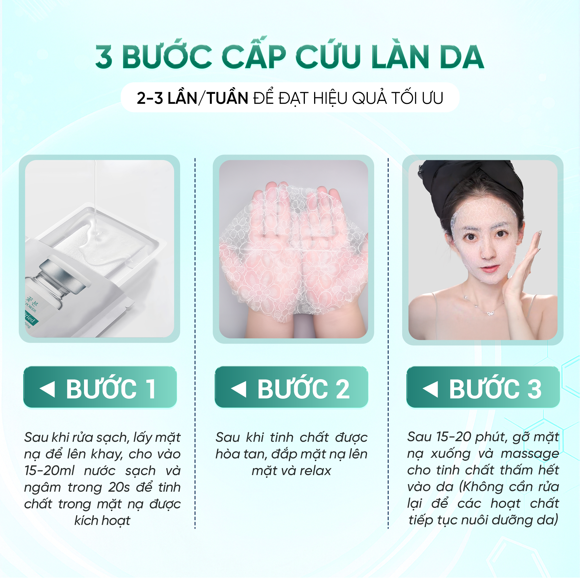 BƯỚC 1: Sau khi rửa sạch, lấy mặt nạ lên khay, cho vào 15-20ml nước sạch và ngâm trong 20s để tinh chất trong mặt nạ kích hoạt