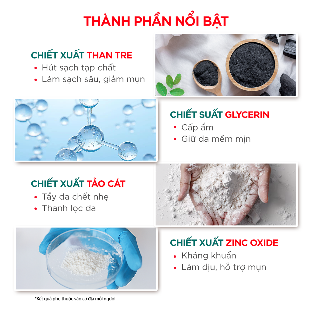 Thanh mặt nạ này được làm giàu với các khoáng chất và chiết xuất thực vật, giúp hấp thụ sâu dầu thừa và bụi bẩn từ da nhờn và dễ nổi mụn, làm sạch lỗ chân lông hiệu quả, giảm mụn đầu đen và ngăn ngừa mụn trứng cá. Nó cũng thu nhỏ lỗ chân lông và cải thiện kết cấu da.